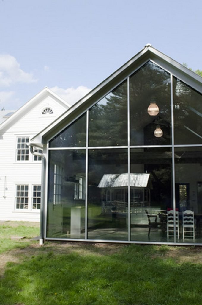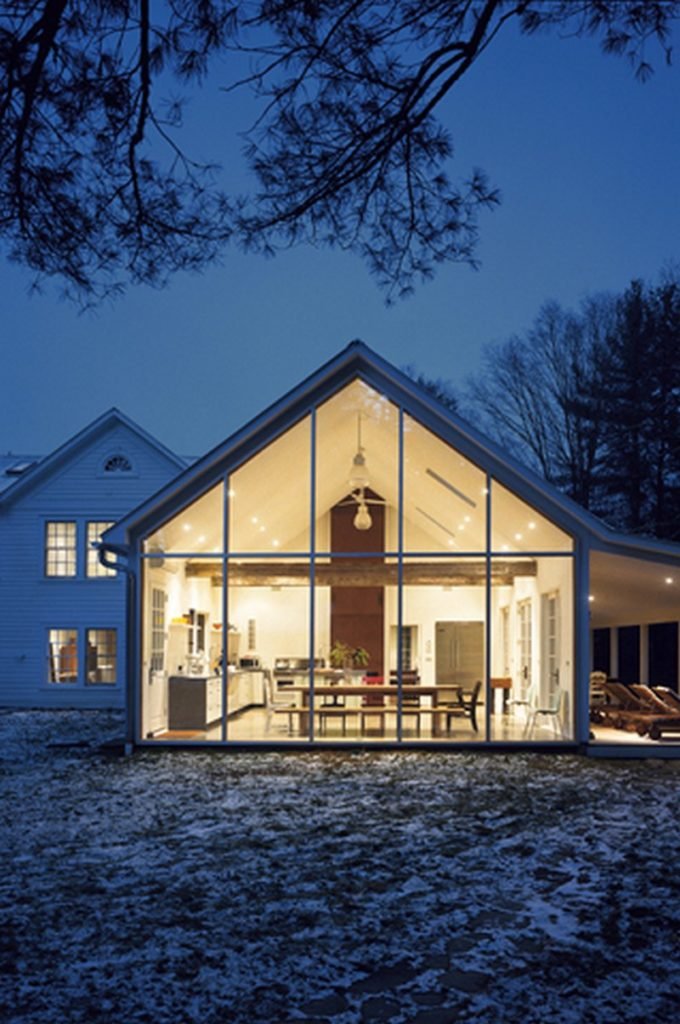 He categorizes the farmhouse not as an experiment in greening but as an exercise in responsible building; its low carbon footprint was cast back in the 1820s, when the home was built with local materials, delivered by horse and wagon, and fashioned by hand. Such a sensitive restoration-meets-renovation pays homage to that past, both aesthetically and environmentally.