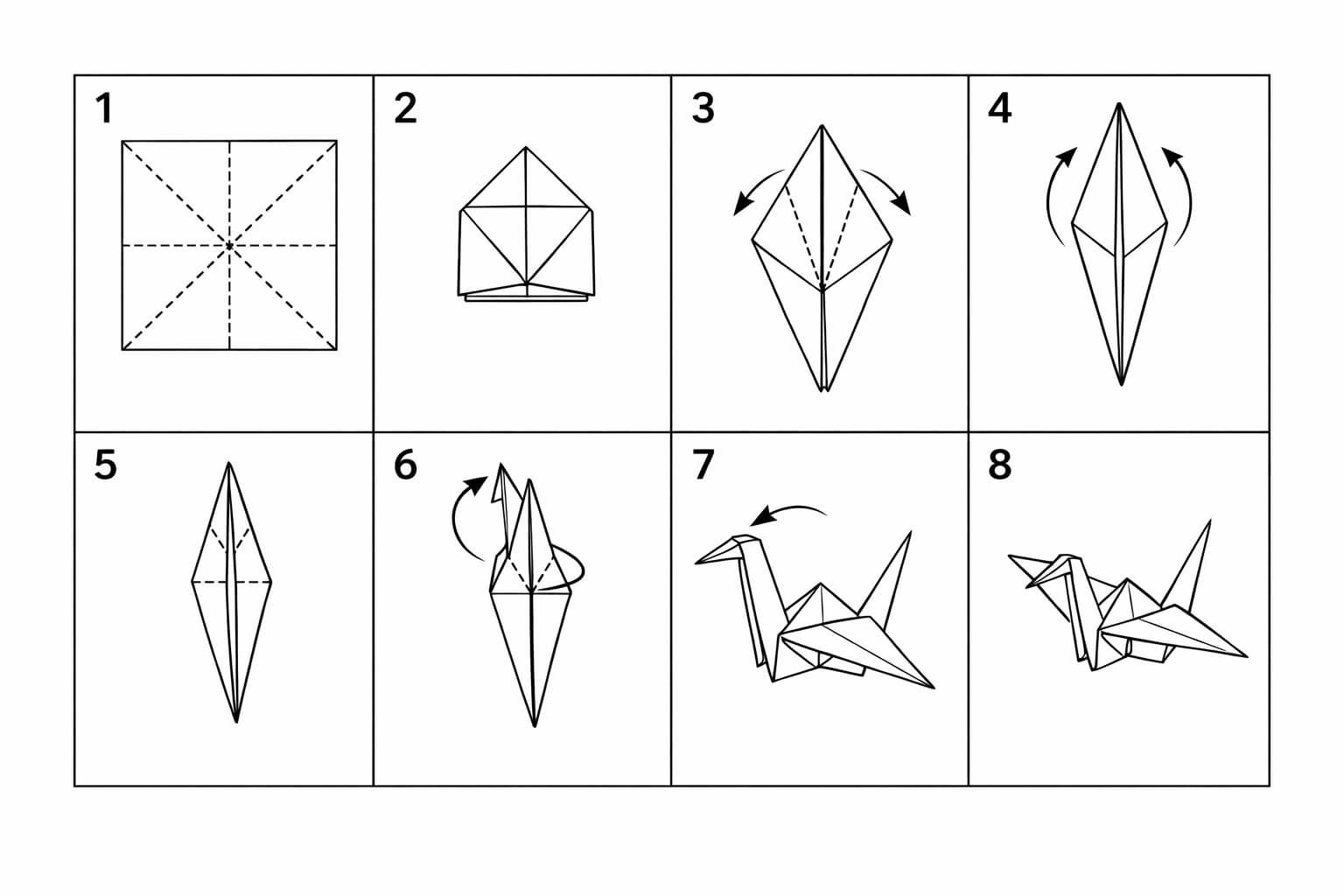 - Success in folding a paper crane depends on maintaining precise alignment and creating sharp, firm creases on a flat surface.