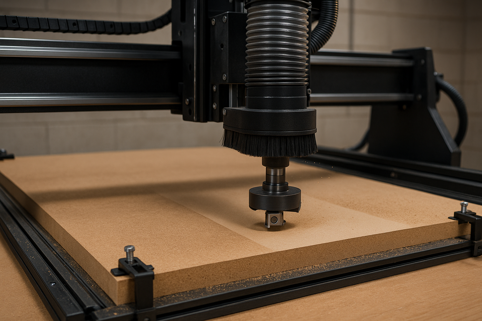 MDF provides predictable cuts and displays setting changes immediately, making it ideal for initial tests and quick reviews. The fibers are abrasive, so rotate or replace inserts on a routine schedule. Keep the suction steady, as fine dust can pack into lanes and create false ridges. A spoilboard surfacing bit handles MDF well and delivers even passes that are easy to check by sight and touch.