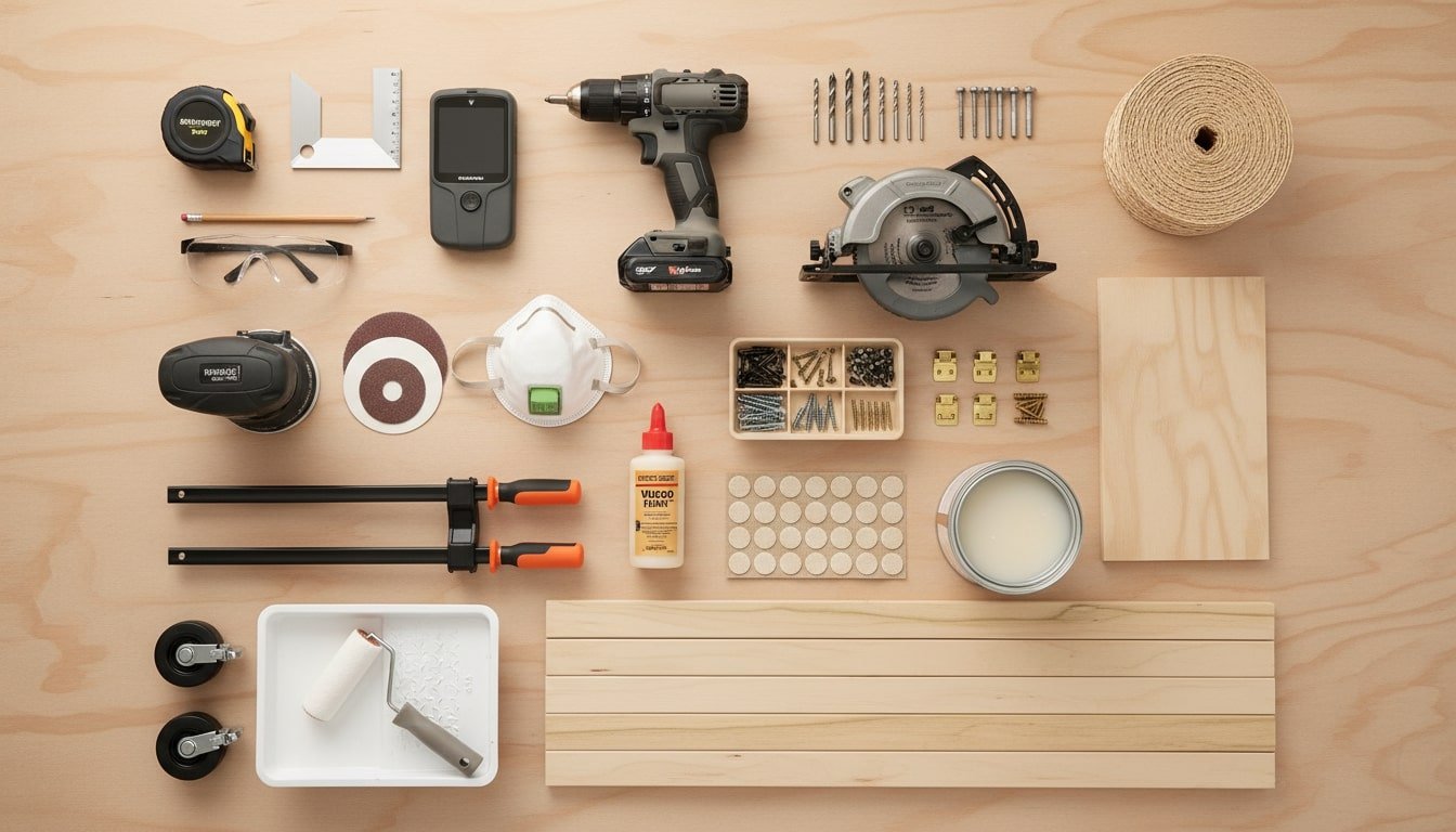 - Add felt pads or low-profile feet, place the diy room divider, and test stability on your flooring.